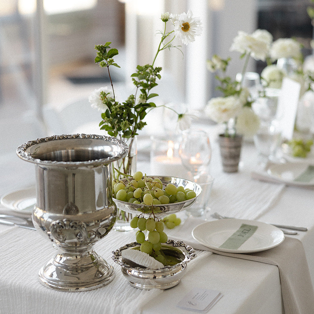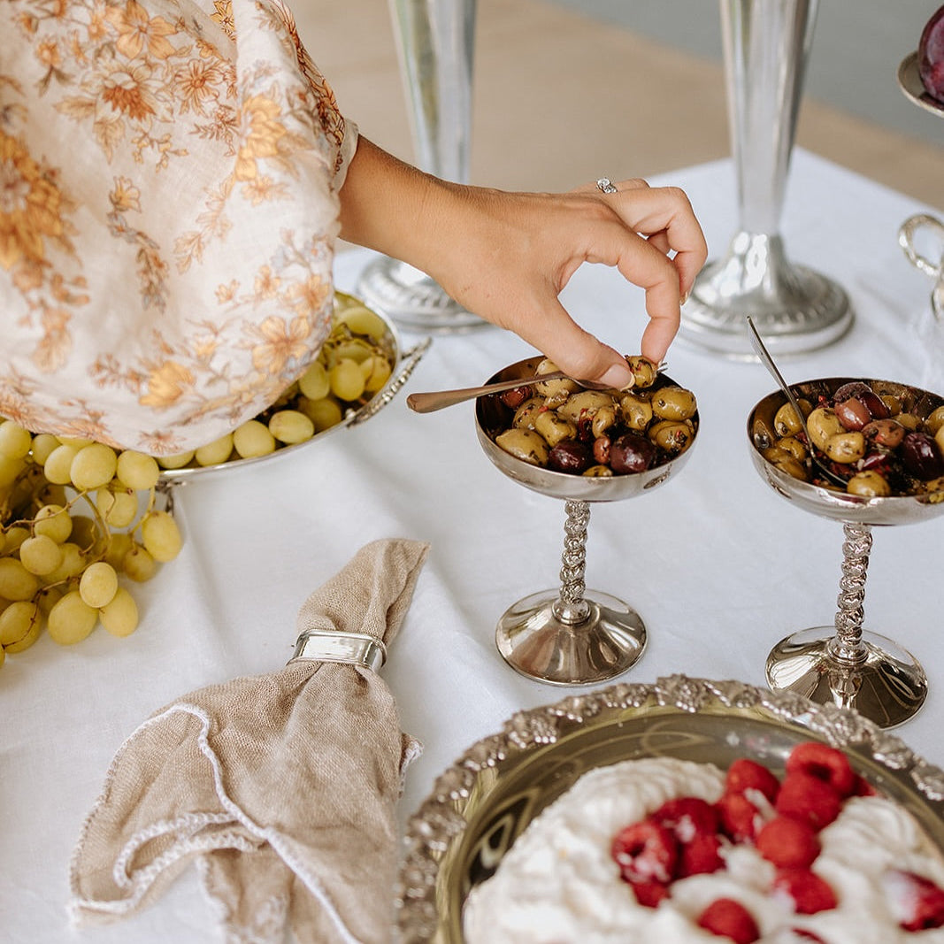 For Grace & Tom’s wedding, our vintage silverware brought a touch of timeless charm to the most decadent grazing table, where every detail felt like a celebration in itself.